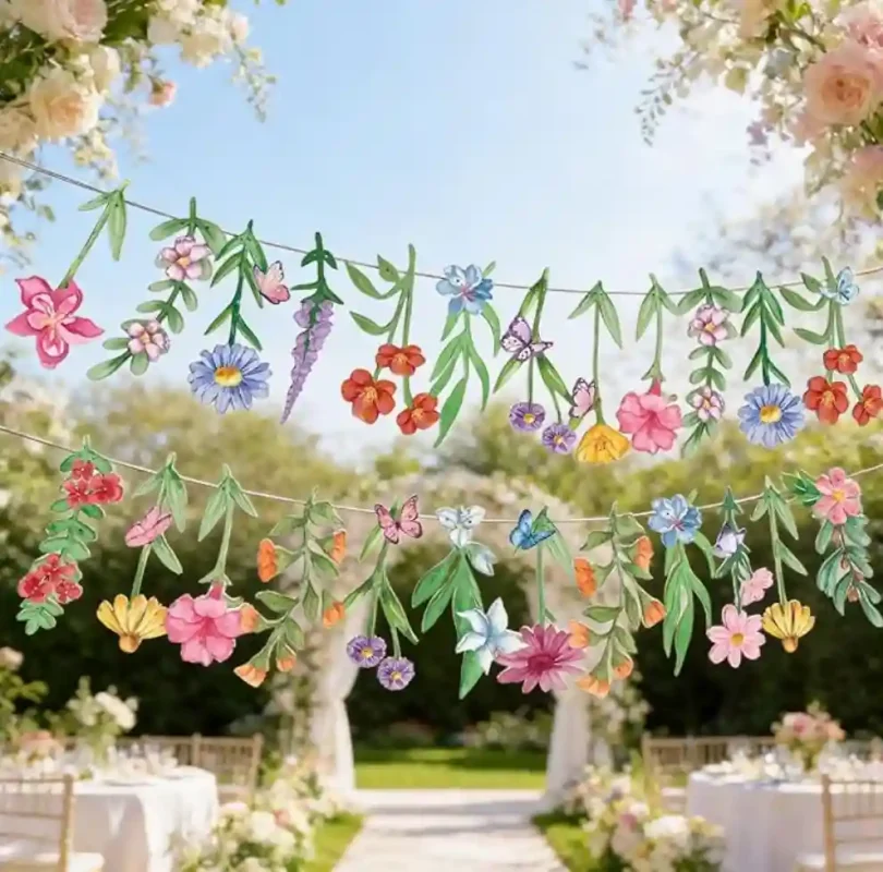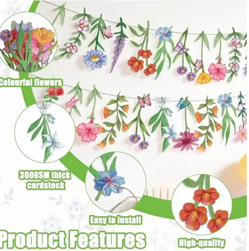 2Pcs Spring Wildflower Party Hanging Decorations, Watercolor Floral Banners Spring Wildflower Cut...