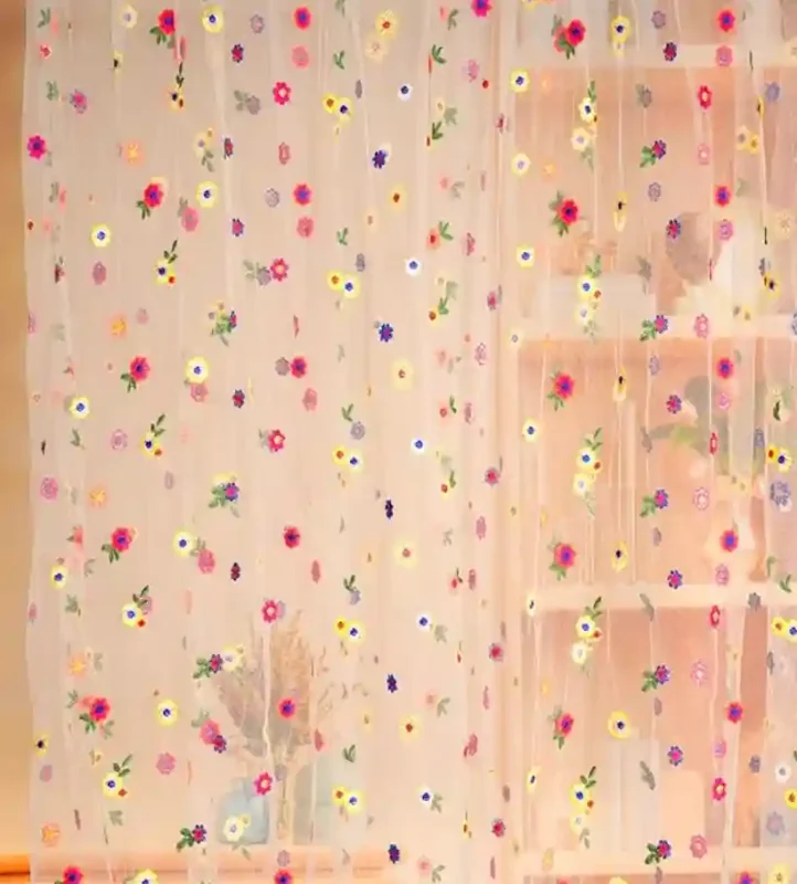 Floral Backdrop Curtain, Champagne Daisy Tulle Flower Embroidery Backdrop Curtain for Spring Summ...