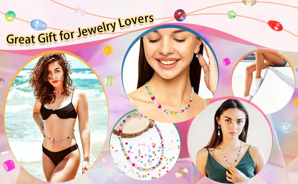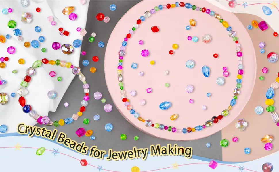 - LOVELY GIFT CHOICE:Each crystal beads for jewelry making is unique and boasts a beautiful range of colors. Whether it’s Valentine’s Day, birthdays, anniversaries, or thank you gifts, our cute beads are the perfect choice for any party or occasion, easy to make necklaces, earrings, bracelets, rings, anklets, ear cuffs and more jewelry making.