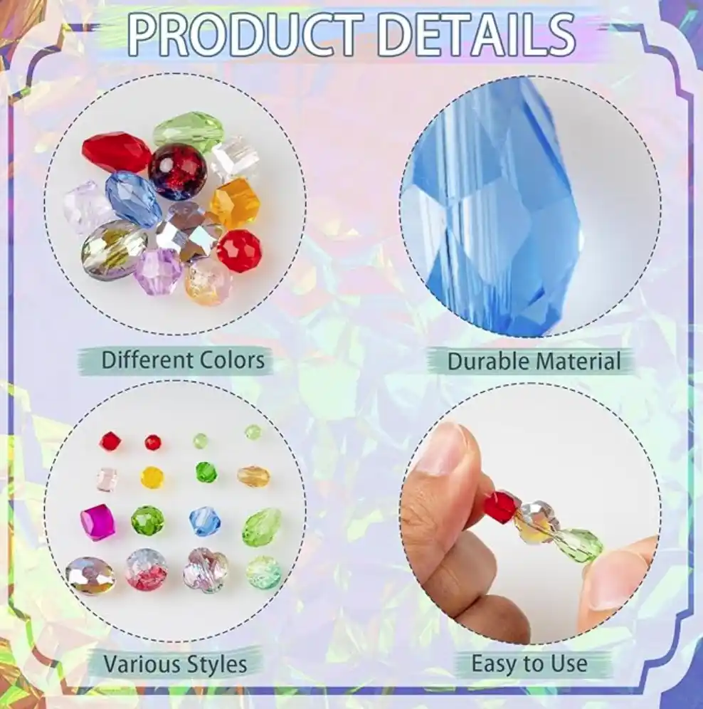 - CRYSTAL COLORED BEADS:Our 636pcs colorful rainbow craft beads set come in different shapes and multi-colors, with crackle, lampwork, faceted, and bicone designs in a rainbow of colors, enough for you to create beautiful and unique jewelry-making pieces that reflect your personal style. Note: ropes are not included.
